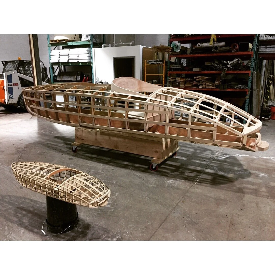 Bugbite is a 2019 single step race boat built to the 1935 design of A.A.Apel. It’s hand built using only the best in modern technologies for adhesives, cold-molding, two part urethane paints/primers and two part urethane varnishes. Hand selected Lloyds Registered marine grade mahogany and first class white oak are used for frame components and planking. Structural fasteners are silicon bronze and chrome plated brass. Kevin Fitzke is responsible for all wood work, painting/varnishing, gold leafing, engine rebuilding, mechanical installations and hand forming the aluminum windshield, air scoop and various trim pieces. All hardware is either original 1930’s period or inspired by this time frame. Bugbite is powered by a rebuilt GM 307 cubic inch engine, with a Borg Warner hydraulic manual transmission, that produces around 210hp. The name Bugbite is from the classic saying “Once you’re bit by the boat bug you’re hooked”. The racing letter “F” signifies the pre-war 225c.i. race class and the number “36” was Kevin Fitzke’s age at the time of completion.